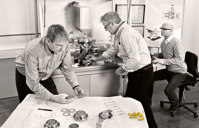 Innovationsmanagement als systematischer Prozess mit transparenten Entscheidungen und engem Projektcontrolling ist ein Baustein von Harro Höfligers Strategie 2020. CEO Thomas Weller erläutert: „Unsere Kunden kommen zu uns, weil sie wissen, dass wir als Technologieführer für ihre Aufgabe die passende Lösung finden – auch jenseits ausgetretener Pfade.“ Deshalb ist es unumgänglich, dass jeder Trend im Markt frühzeitig erkannt und analysiert wird. Allerdings müssen, betont Thomas Weller, „neue Ansätze in enger Abstimmung mit den Kunden eingeführt werden. Denn der Kunde schätzt zwar Kreativität, mag aber keine negativen Überraschungen.“ Der Schlüssel dazu liegt in der sogenannten Co-Innovation mit dem Kunden. Für Peter Claußnitzer ist das der Routinefall bei Harro Höfliger: „Viele gute Lösungsansätze entstehen gemeinsam mit unseren Kunden. Wir schaukeln uns zur Spitzenleistung hoch.“