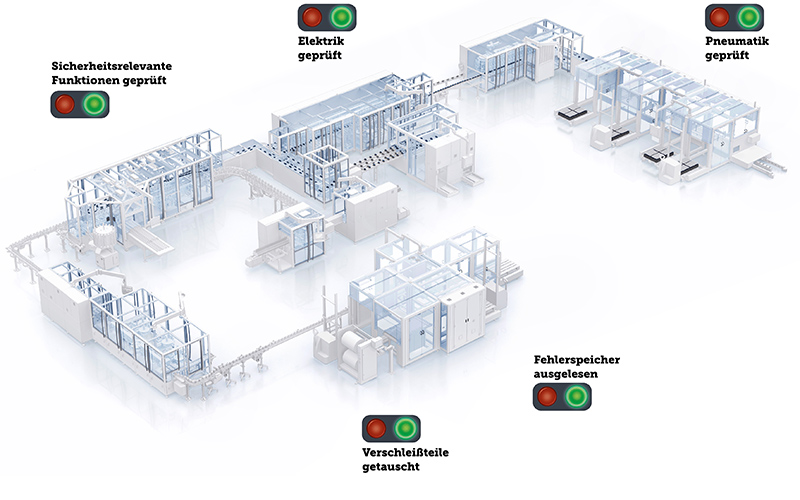 Linie 13 besteht aus unterschiedlichen Maschinentypen: von Trayloadern, einer Montageeinheit, mehreren Etikettierern über Faltschachtelaufrichter bis hin zum Toploader-Kartonierer. Dazu kommen zahlreiche Zuführ- und Kontrollsysteme – ein komplexes Konstrukt aus 14 Maschinen, die eng getaktet zusammenarbeiten. Die gesamte Anlage so zu warten, dass technische Störungen vermieden werden, das soll zukünftig durch den Preventive Maintenance Plan möglich werden.