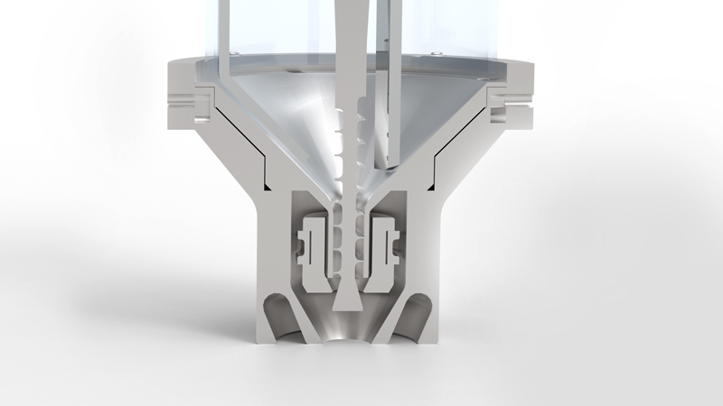 Deshalb umfasst das System von Harro Höfliger seit mehr als zehn Jahren einen speziellen Verschließmechanismus. Die Austrittsöffnung des Dosierzylinders wird während des Dosierens geöffnet und bei einem Dosierstopp automatisiert verschlossen. Dies erfolgt mittels einer Hülse, die im geschlossenen Zustand auf dem Verschlusskonus der Dosierschnecke aufliegt, was den Pulveraustritt verhindert. So ist das Pulver immer dann – und nur dann – „im Flow“, wenn das auch gewünscht ist.