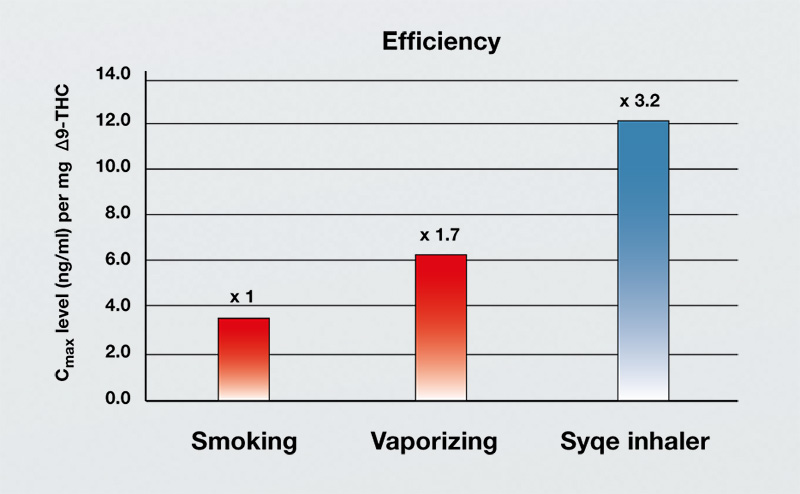 The most efficient administration route for medicinal cannabis is inhalation. Studies have shown that the quantity of THC released with the Syqe inhaler is three times higher than during smoking.