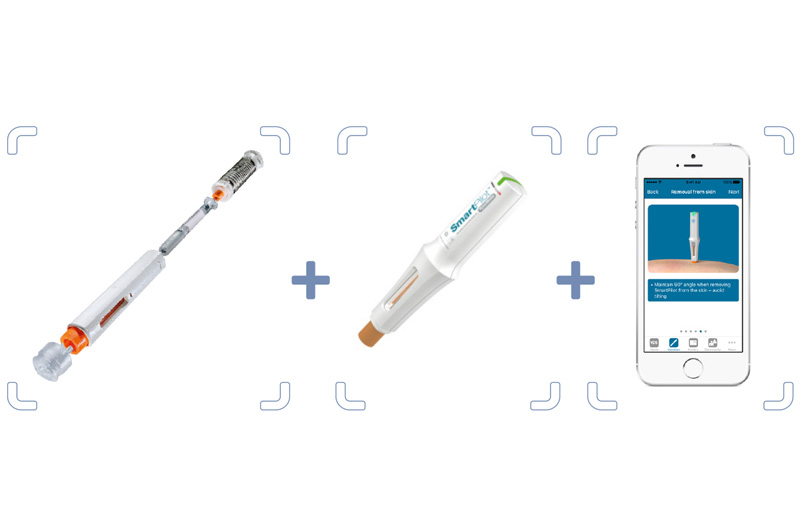 The Ypsomed SmartPilot is an example of a smart injection device. This reusable add-on for the YpsoMate® transforms the auto-injector into a device connected to the Internet.